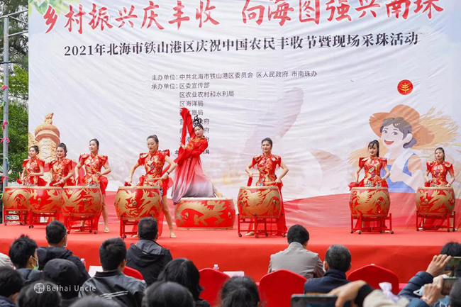 12月21日上午9时30分,“乡村振兴庆丰收 向海图强兴南珠”2021年北海铁山港区庆祝中国农民丰收节暨现场采珠活动,在铁山港区营盘镇青山头乡村度假村隆重举办。