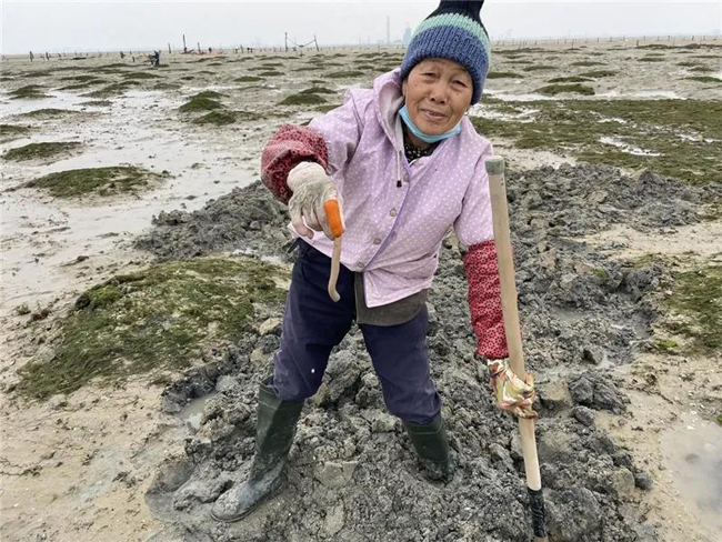 “过年期间,沙虫的价格比平常高了不少,今天潮水合适,所以我们就来挖点沙虫卖。”渔民付女士说。