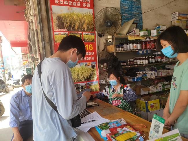 2022年3月,植保植检站对全市192家农药店铺中的23家进行随机抽查,检查地点分别为岑城镇、马路镇、糯垌镇。我站对每家农药店铺随机抽取5个品种农药,针对厂家、规格、含量、库存进行农药进销存电子台账检查。经检查发现,绝大部分农药店铺进销存台账不完善,有个别对农药进销存台账系统使用操作不明白。针对存在问题,相关工作人员在检查过程中采取以下措施:一是督促农药经营主体限期完善电子台账;二是指导广西农药进销存台账系统的下载使用方式;三是宣传《农药管理条例》中有关建立进销存台账的条款。