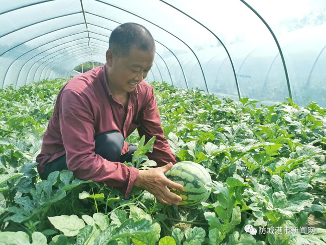 林建伍是河南商丘人。2019年,在老家种了几年西瓜的他,跟着朋友一起来到防城港从事收废品的行业。但受疫情的影响,废品行业受挫,林建伍另寻出路,便干起了老本行。2020年底,林建伍在港口区光坡镇光坡村尝试种植西瓜,收成不错。2021年底,他又在光坡镇沙螺寮村寻得50多亩的土地,尝试种植西瓜、红薯、萝卜等作物。