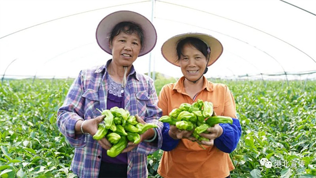 “基地承包我们的土地,一亩地年租金800元,我们到基地干活,每天收入100元,还可以照顾家里,挺好的。”4月12日,记者来到港北区大圩镇大仁村的辣椒种植基地里,正在基地摘辣椒的村民梁燕芬高兴地说。