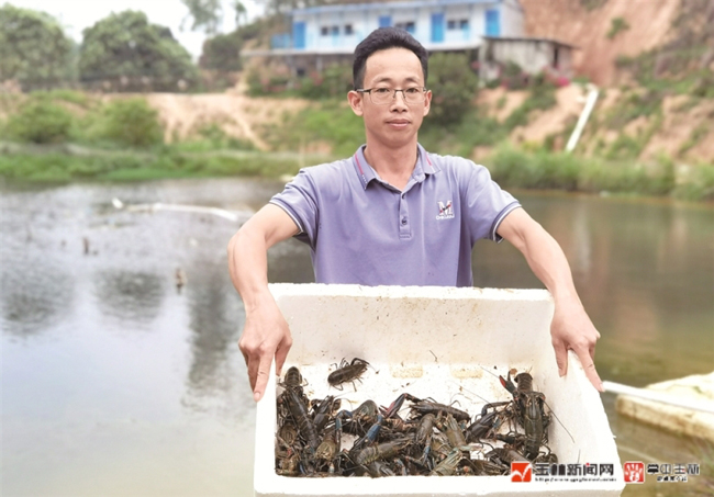 现在,朱程佳的澳洲蓝龙虾养殖基地每天都出货,产品走俏。他通过“公司+农户”的方式示范带动了宁潭镇及周边乡镇的58户农户养殖澳洲蓝龙虾,养殖池塘面积达1200多亩,养殖规模还在不断扩大。