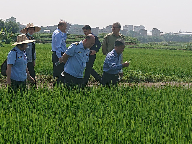 2022年5月17日,梧州市农业农村局副局长徐伟宏带领局科技教育科、种植业管理科及梧州市农业综合行政执法支队一行5人,到藤县水稻种子生产基地进行监督检查。通过查看藤县万合水稻种植专业合作社潭东水稻种子生产基地的种子生产备案材料、田间生产档案、基地管理制度及进行田间纯度检查、转基因现场快速检测等方式,共检查制种田面积约450亩,涉及水稻品种12个。