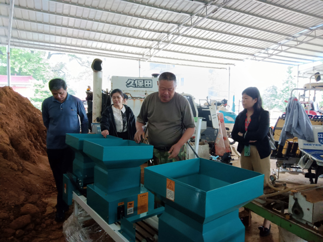 灵川县农机中心副主任黄华清到灵川县绿竹合作社指导社会化服务工作
