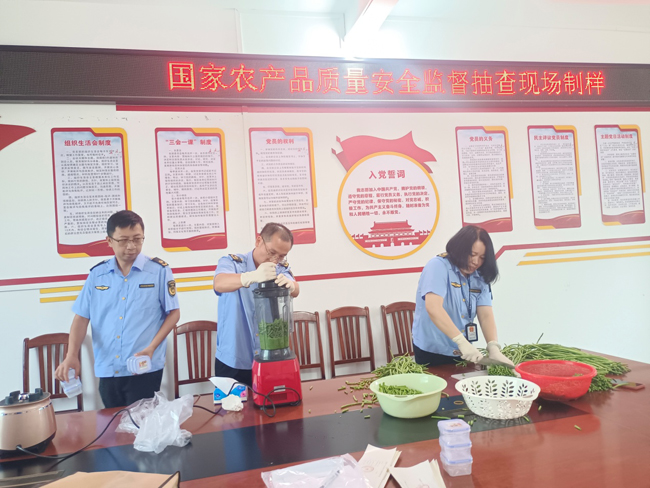 为深入实施食用农产品“治违禁 控药残 促提升”三年行动,持续严打禁限用药物违法使用行为,推动农产品质量安全形势稳中向好发展,6月11-12日,柳州市农业综合行政执法支队副支队长韩良俊等人协助国家农产品质量安全监督抽查工作组、自治区农业农村厅农产品质量安全监管处到柳州市开展豇豆专项质量安全监督抽查和相关调研工作。