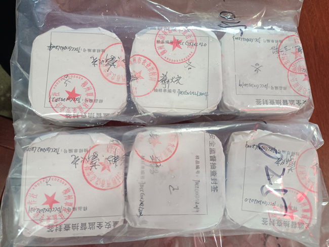 工作组到白沙镇王眉村的柳州市鱼峰区螺蛳粉产业示范区豇豆生产基地、柳州市蔬菜副食品有限公司绿都现代生态农业示范园、柳城县东泉镇绿宝蔬菜种植专业合作社进行实地采样,现场采摘豇豆样品10份,按步骤对所采样品进行抽检分离、现场制备和封存样品,现场处置后的样品将统一运送到农业农村部实验室进行专项检测。