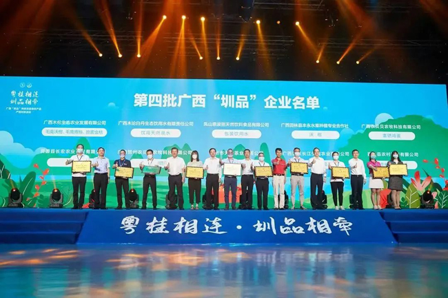 活动现场,与会领导分别为10家广西企业“圳品”颁发了广西“圳品”十佳人气奖、广西第四批10家企业的15个成功获评“圳品”的广西产品举行了授牌仪式,并共同启动了广西“圳品”和供深基地农产品产销对接活动。