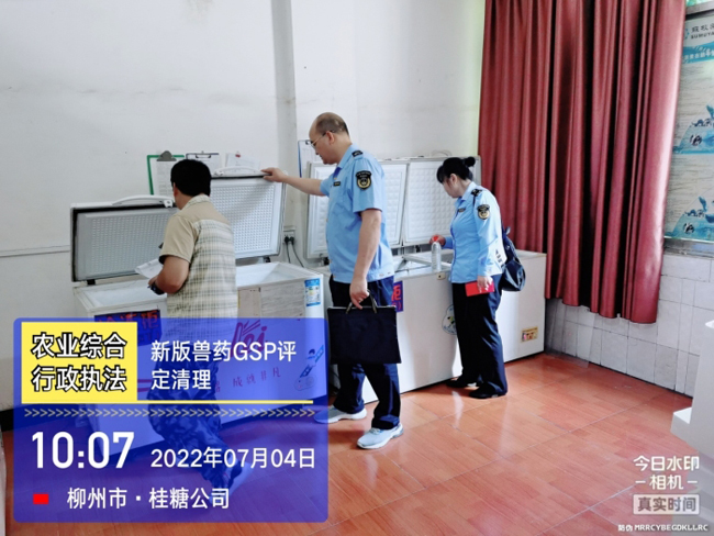 为严厉打击违法违规销售兽用生物制品等行为,维护公平竞争市场秩序,不断提升兽药产品质量安全水平,促进兽药产业高质量发展。按照自治区农业农村厅的统一部署,2022年7月4日,柳州市农业综合行政执法支队畜禽养殖业执法大队组成检查小组,到柳南区、柳北区的4家兽药经营企业开展新修订的《广西壮族自治区兽药经营质量管理规范实施细则》(简称新版兽药GSP实施细则)实施情况清理行动。