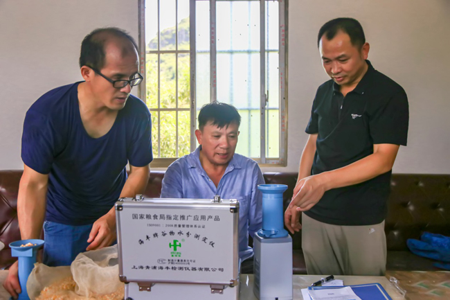 技术人员在进行玉米水份含量测定