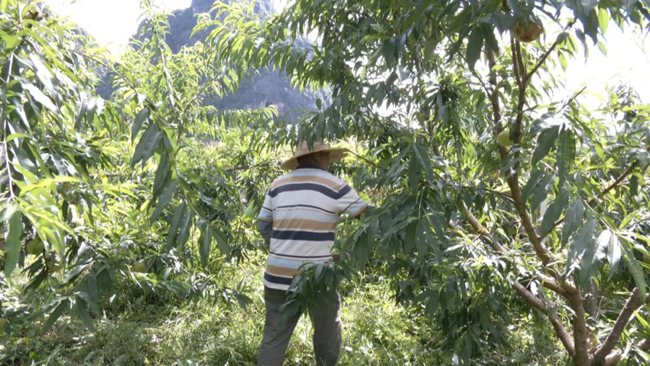 天等县把荷乡怀安村塄加屯 卢东成:今年的雨水充沛,鹰嘴桃长势很好。果结得很多、今年是我收获的第一批鹰嘴桃。鹰嘴桃种植很简单,且很好管理,基本上每个月来一次收枝这样就可以了。