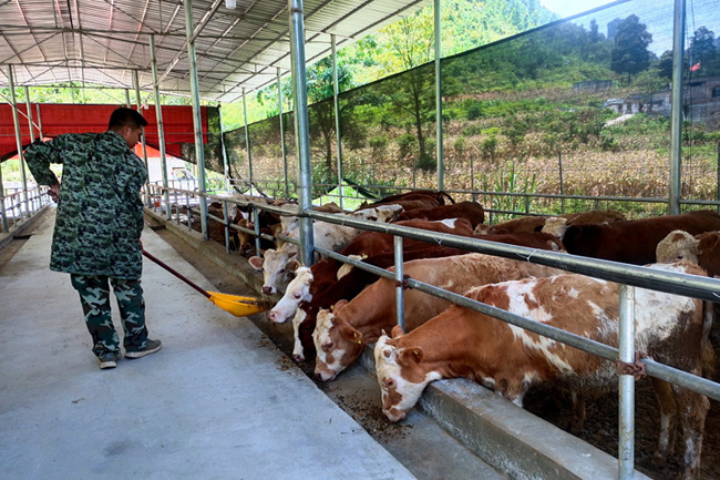 田阳区洪富组织管理服务有限公司董事长李冯介绍:“牛棚的建设已经完成,预计养殖肉牛100头左右,现在目前进场60头。同时增加了两个岗位,都是从本村的村民里面应聘,每个员工的工资是2800元/月。”