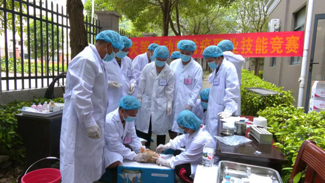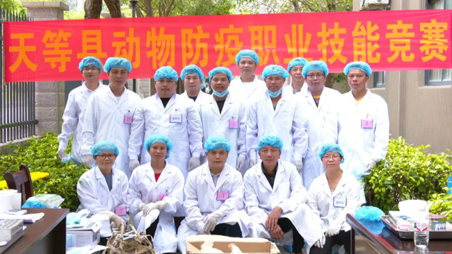天等县动物疾病预防控制中心主任 陈振恒:主要目的就是提高县乡两级的动物防疫职业技能水平。同时,也是为了选拔出优秀选手,参加崇左市第四届动物防疫职业技能竞赛。
