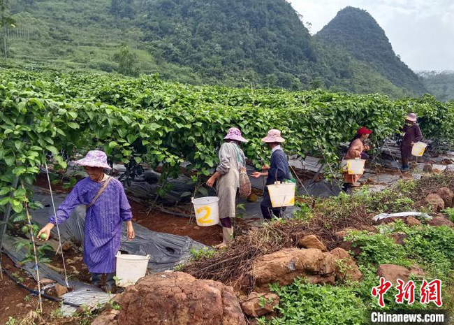 当地一家企业负责人黄颖颜介绍,初到园区时仅是一块荒地,而后在当地政府帮助下引进乡村振兴财政资金579万元(人民币,下同),进行土地翻整、滴灌等配套设施建设。黄颖颜说,2022年,预计百香果园区产值可达550万元以上,村级集体经济收入可达165万元。