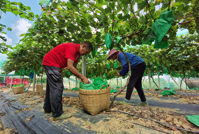 乡村振兴,产业兴旺是关键。葡萄是那阳镇的农业特色产业之一,主要种植分布在莫大、大联、那阳等几个村委。近年来,该镇着力打造茶旅小镇,以农业增效、农民增收、农村致富为目标,大力培育农村特色产业,充分依托当地的资源优势,引导群众发展种植巨峰、夏黑、阳光玫瑰、金手指等葡萄品种,并融入农家乐、观光游逐步形成休闲度假“约在那阳”路线,为群众带来“好钱景”,以特色产业带动乡村振兴。