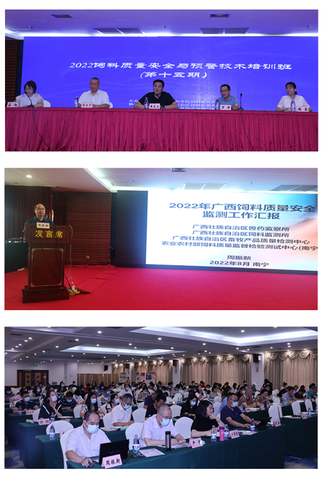 8月9-10日,由中国农业科学院饲料研究所主办、广西饲料监测所协办的2022年饲料质量安全与预警技术培训班在南宁举行。自治区农业农村厅畜牧与饲料处负责人出席并致辞,部分省级饲料质量安全预警体系的负责人和技术人员、饲料企业代表及自治区饲料监测所检验检测人员共计140余人参加了培训。