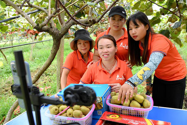 “各位网友,大家好,现在我们是在广西罗城猕猴桃基地给大家直播,这里的猕猴桃均施用农家肥,品质可靠,甜度在16至22度之间,有小果、中果、大果、特大果几种规格,规格不同,价格也不同,点开右下角的弹窗,有各种规格的价格,现在下单,今天就可以发货。”近日,罗城仫佬族自治县一电商直播团队主播在罗城东门镇中石村红心猕猴桃基地向全国网友推介销售罗城红心猕猴桃。