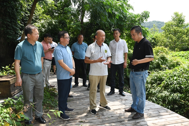 2022年8月15-16日,中国农业科学院蜜蜂研究所所长彭文君、副所长吴黎明,蜜蜂病虫害防控团队首席代平礼,自治区农业农村厅畜牧与饲料处处长罗军,区养蜂指导站闭正辉,桂林市农业农村局副局长蒋林等人在阳朔县农业农村局局长夏智连、党组成员蒋先彪的陪同下考察指导阳朔蜂业质量提升行动项目建设。