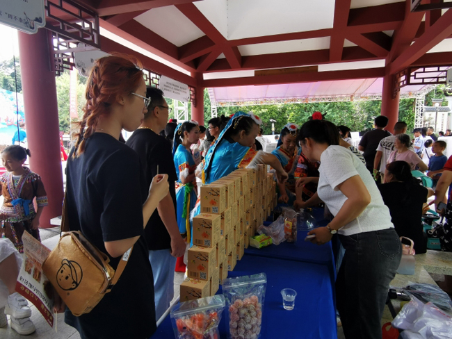 在融安县展位上,柳州融安金园食品有限公司带来的金桔柠檬膏、金桔雪桔等农产品深受消费者喜爱,让消费者既享受到线下优质服务,又感受到网上的优惠价格,引来连连点赞。当天,该公司通过线上销售、线下订单等形式,共卖出农产品200余盒,销售额超10000元。