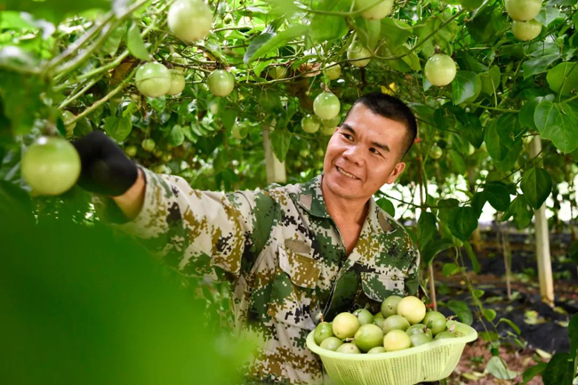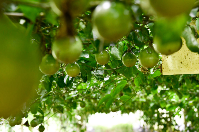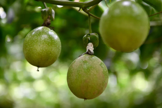 这片基地的主人叫林建乐,曾在外做生意多年。2019年,他偶然发现黄金百香果产业具有良好的发展前景,便决定返乡创业,利用自家土地试种了10余亩黄金百香果。“这种果子有很多品种,我最开始种植的品种虽然产量很高,但口感、市场价都不尽如意。”林建乐告诉笔者,为了寻找品质更优的百香果品种,他多次到百色等地考察学习,经过反复对比和试验,在今年改种钦蜜9号黄金百香果,靠查阅相关种植资料和书籍、参观学习等方式不断提高种植技术和管理水平,精心做好日常的除杂草、物理驱虫工作,果树的长势越来越喜人。