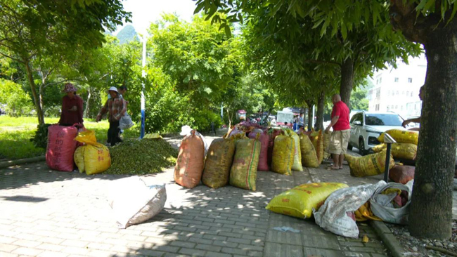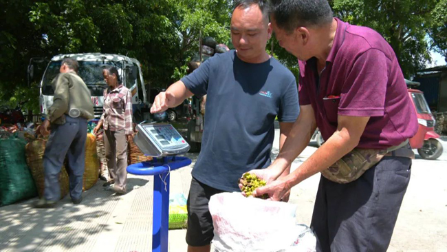收购商 黄志龙:现在收八角比较少了,比六七月份那时候每隔两天收一次的话,量是十几、二十万斤,现在的量最多是六、七千斤,量没有以前那么大了,以前六、七月份的收购价是八块五六,现在是六块多到七块钱这样。