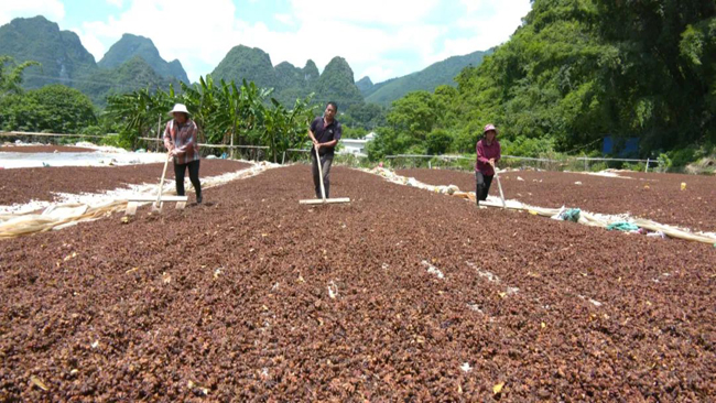 眼下正值第一期八角的采收旺季,天等县八角种植户喜获丰收。日前,农户们赶着好天气采摘上市。