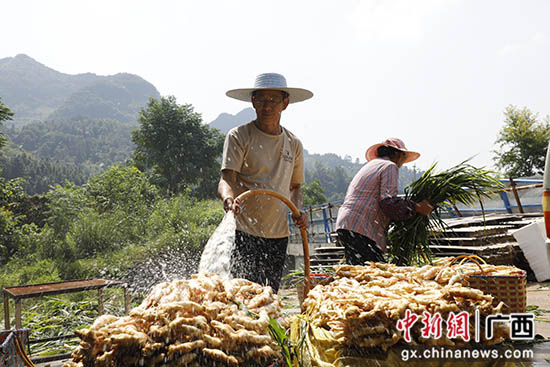 “今年生姜价格不错,收入应该不下10万元人民币。”在广西荔浦市龙怀乡东坪村,正清洗分拣生姜的郭建文说道。进入9月,荔浦市龙怀乡4000多亩高山生姜大量上市,高山生姜成为龙怀乡农户增收的“绿色银行”。