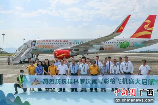 桂林航空旅游集团党委书记、副董事长邓康康介绍,桂林航空自2016年开航至今,累计开通航线190余条,通航城市81座。“桂林罗汉果”号是桂林航空继“桂林号”“两江四湖•象山号”“猫儿山泉号”“爽圆圆·桂林米粉号”“龙胜龙脊梯田号”之后的第六架彩绘飞机,将为桂林市再添空中名片,必将助力“桂林罗汉果”推广至全国各地。