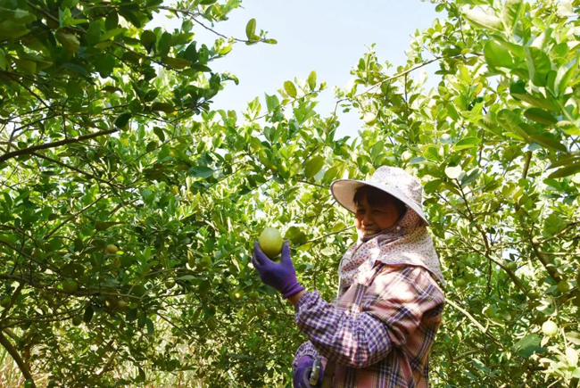 种植户杜女士正在采摘香水柠檬。