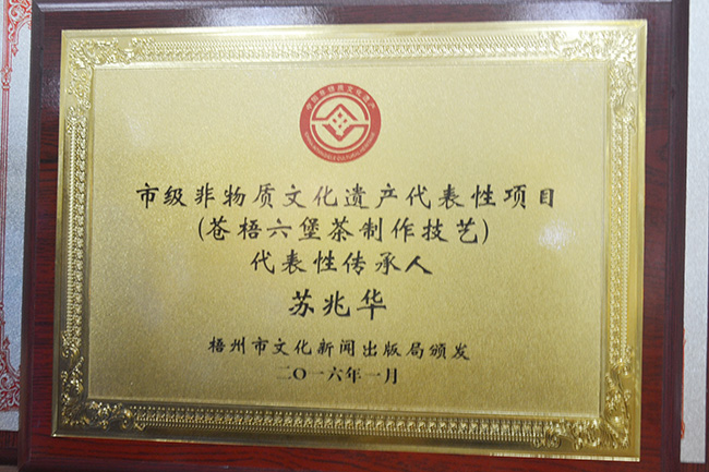 苏兆华荣获六堡茶制作技艺自治区级和市级代表性传承人认证