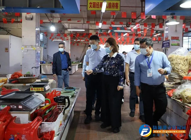 10月10日下午,市长黄江率队检查督导防城中心市场疫情防控措施落实情况,专题调研食品安全工作。