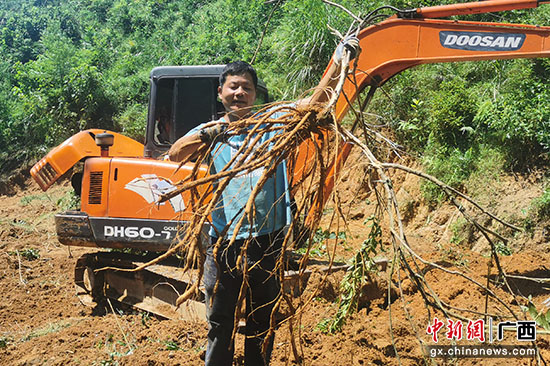 近日,走进广西玉林市兴业县卖酒镇境内的南药种植示范基地,几台挖掘机正在轰隆隆地工作,挖掘起来的褐色根茎,就是素有“南方高丽参”之称的牛大力。