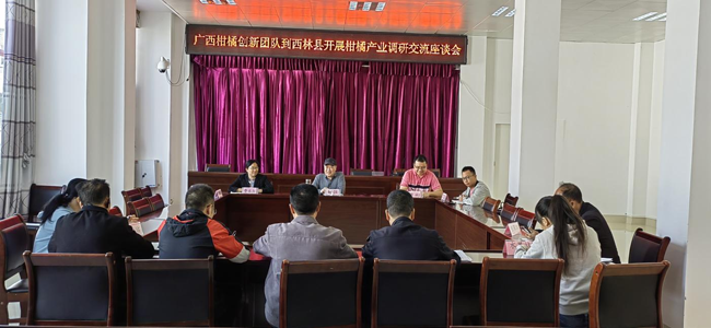 本次活动以实地走访、座谈交流形式开展。调研组依次到西林那劳镇、古障镇的泽西果园、桂沃果园、泰源果业果园、泰源果业开发有限公司捡果厂、鑫天兰农业科技有限公司果园走访调研,与西林县农业农村局相关负责人就柑橘产业产品质量安全、柑橘病虫害综合防控等开展座谈交流。西林县农业农村局对调研团的到来表示欢迎,向调研团介绍了西林县柑橘产业的实际概况;西林县柑橘产业以砂糖橘为主,早熟品种金秋砂糖橘种植规模已超1万亩于10月10日开始采摘上市,零星种植的如沃柑、贡柑及柚子等分布在各个乡镇,根据现场调研情况,结合桂西北站的工作情况汇报后,黄强一行提出指导性建议意见,要因地制宜,充分利用地区特色气候资源优势把柑橘早熟品种做成规模化、产业化、品牌化,要抓好柑橘产业绿色生产、提质增效、强农富农,助力乡村振兴。