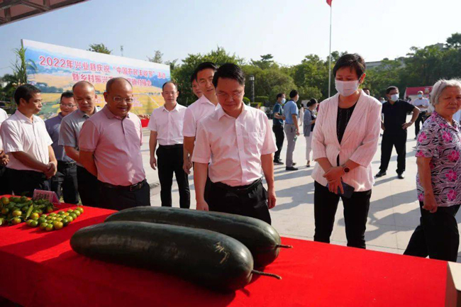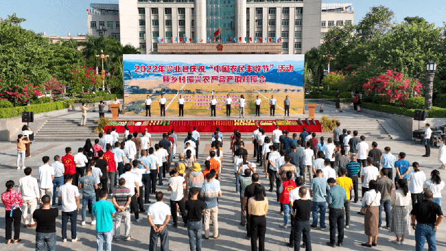 10月27日,2022年兴业县庆祝“中国农民丰收节”活动暨乡村振兴农产品产销对接会在兴业县人民广场举办。全县13个镇和11家农业产业企业(合作社)70余种特色农产品在现场亮相。县委副书记卢明刚、县人大常委会副主任周鸿杰、副县长刘敬、县政协副主席梁肇生参加活动。