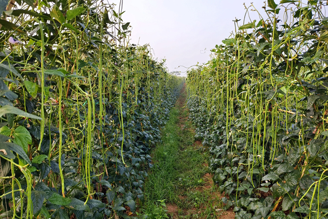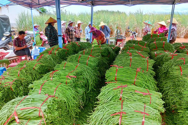 眼下,柳州市柳江区穿山镇高平村的200亩豆角迎来了大丰收,豆角亩产约4000斤,总产量在400吨左右,预计产值可达160多万元,鲜嫩细长的豆角延长了村民的致富路。