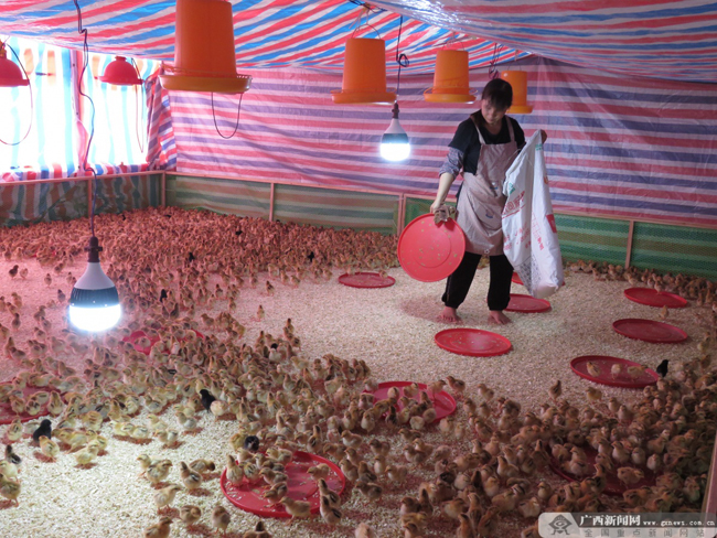 “我在厂里上班已有3年了,工资待遇底薪+奖金每个月最低收入不少于3000元还包食宿,我很满意。”11月3日,记者走进河池市大化瑶族自治县广西汇君农牧有限公司七百弄鸡第二养殖场车间,脱贫户李美英一边忙着和工友给上千只七百弄鸡喂米喂水一边高兴地说。