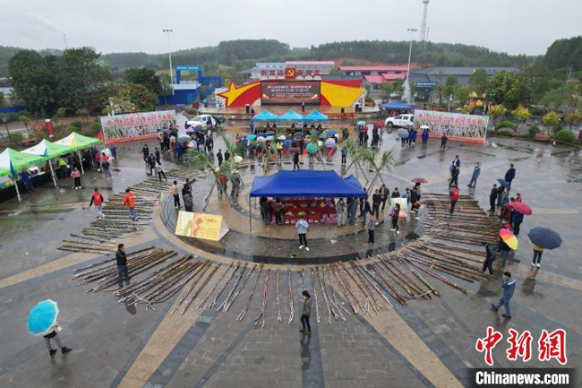 新榨季即将到来,广西来宾市象州县23日在该县石龙镇举行甘蔗丰收节活动,“甘蔗王”比赛是当天活动的重头戏。比赛根据甘蔗重量、长短、粗细、弯曲折度及甘蔗糖分高低等情况,评选出“甘蔗王”。
