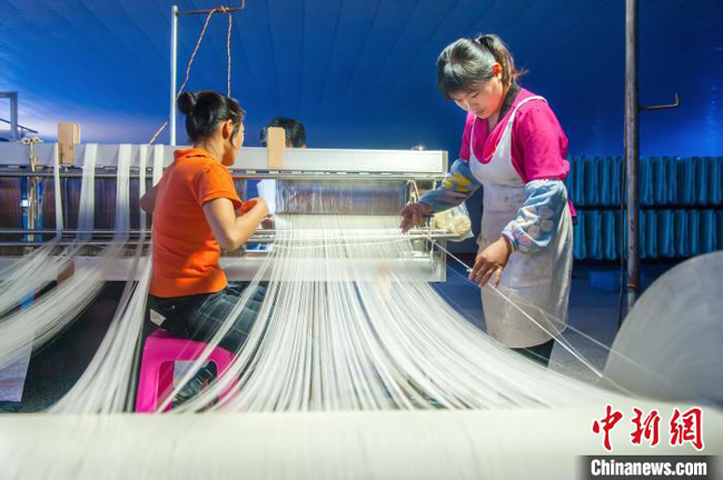 河池市丝绸生产线。