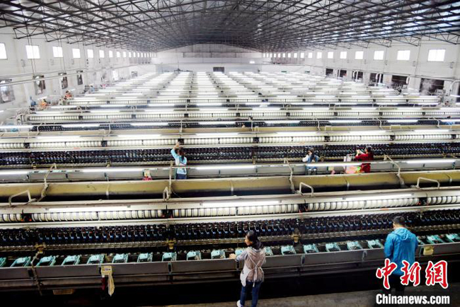 图为广西恒业丝绸集团缫丝车间。
