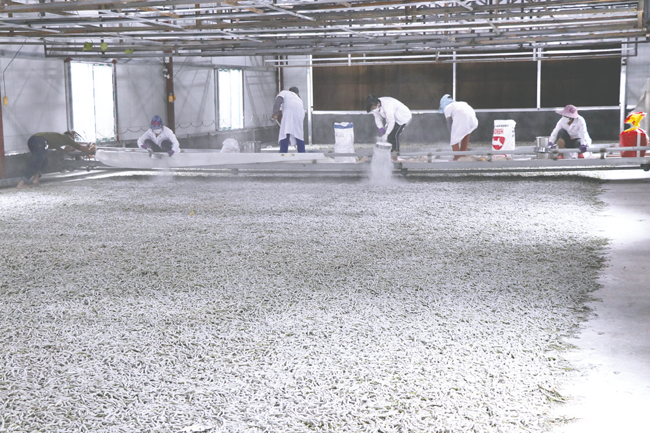 工人正在给蚕宝宝进行消毒。