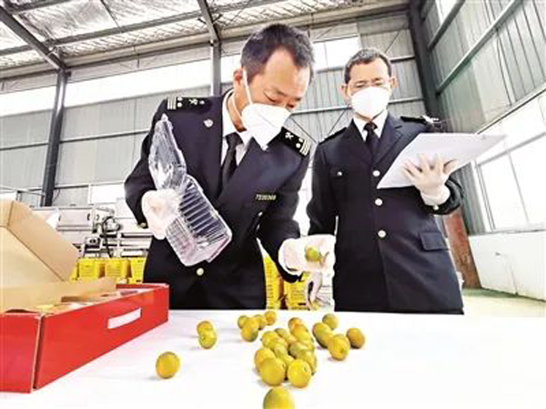 融安金桔属于生鲜果蔬,柳州海关实行预约通关模式,指导企业用足用好原产地优惠政策,并安排专人“即报即查”,24小时内完成从申报到查验全流程。