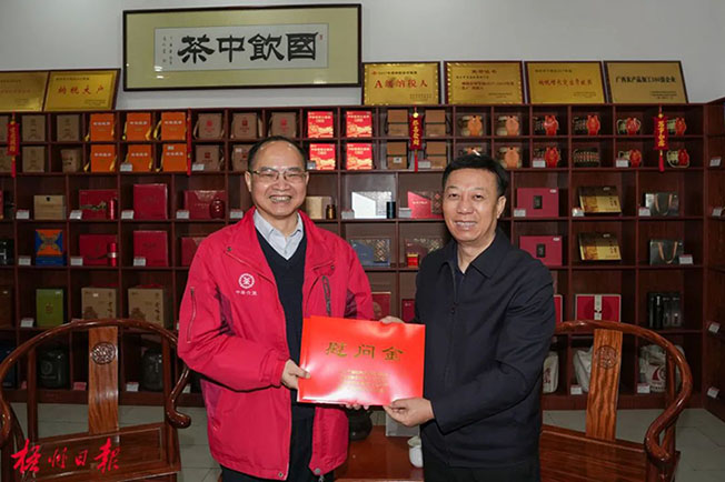 1月9日,市长钟畅姿带队来到梧州市天誉茶业有限公司,看望慰问董事长吴燕。 陈凡 摄