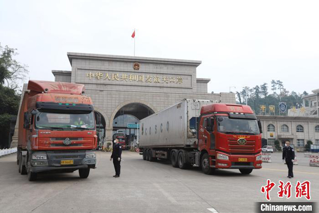 上午8时,友谊关口岸的货车已排起两三公里的长龙。眼下正值东盟水果进口旺季,装载着泰国榴莲、山竹,越南西瓜、火龙果、菠萝蜜的车辆源源不断地从友谊关口岸入境,有序通关。