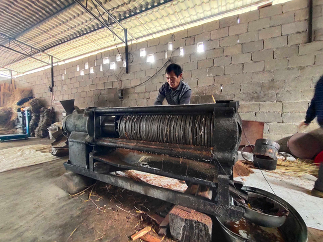 山上的游人赏花拍照玩得不亦乐乎,山下的榨油小作坊里,机器轰鸣,雾气缭绕,工人们正在热火朝天地忙碌着。榨油的流程十分讲究,茶籽烘干后,用粉碎机打成粉状,放到蒸笼里面蒸熟,然后稻草和模具把蒸好的茶籽粉,做成一个个圆形的茶籽粉包放到压榨机上,经过每压榨一滴山茶油,都要经过烘烤、碾粉、蒸粉、做饼、压榨、过滤等六道工序,最终变成独特浓郁的山茶油。