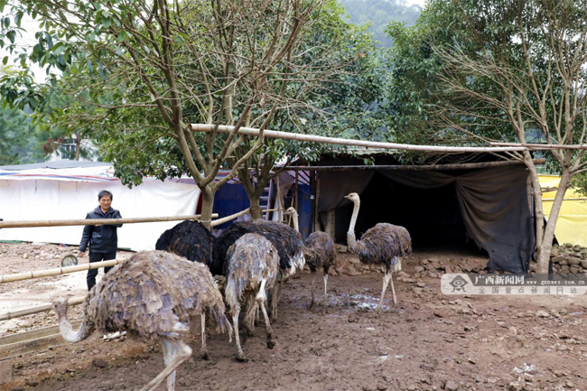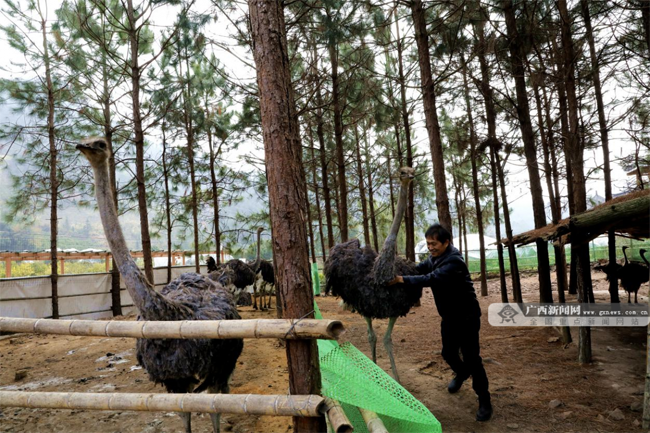 黄通仁在察看鸵鸟生长情况。广西新闻网通讯员周俊远 摄
