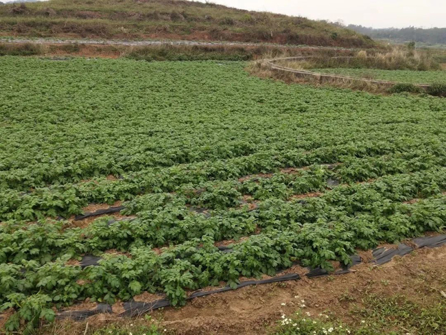 何月娟在土豆苗地使用加厚农膜。