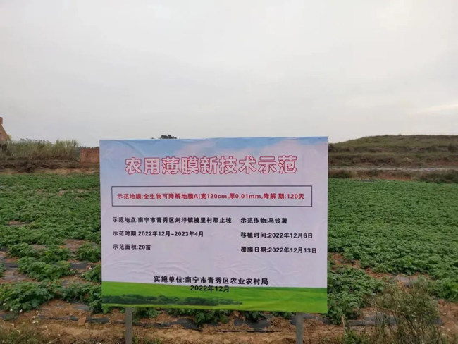 农用薄膜新技术示范地立牌。