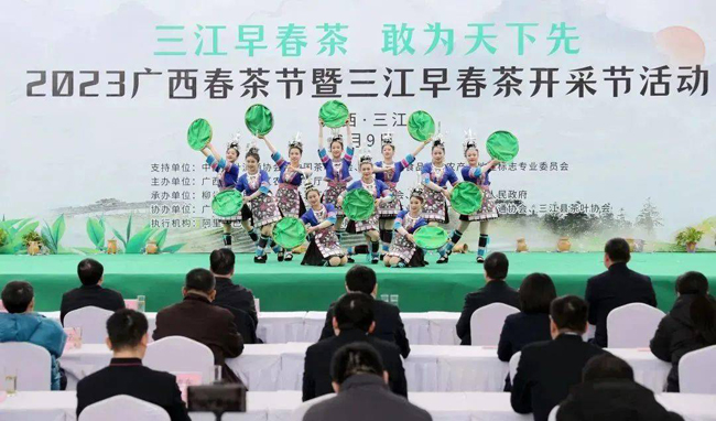 早春时节,茶韵飘香。2月9日上午,由中国茶叶流通协会等单位支持,广西壮族自治区农业农村厅主办,柳州市人民政府、中共三江侗族自治县委员会、三江侗族自治县人民政府共同承办的2023广西春茶节暨三江早春茶开采节活动在三江侗族自治县古宜镇光辉村马湾·茶园里举行。