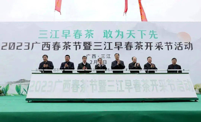 柳州市委书记吴炜,中国茶叶流通协会会长、全国茶叶标准化技术委员会主任委员王庆,广西壮族自治区农业农村厅二级巡视员徐世宏,柳州市委常委、三江侗族自治县委书记邝驱等领导出席活动。吴炜书记宣布开幕,与会领导共同推杆,正式启动春茶开采节活动。