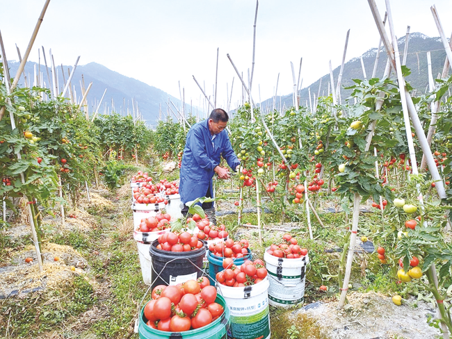 “我家今年种植了3亩西红柿,亩产一万斤,不仅本地人爱吃,还吸引了很多外地客商,现在我们的西红柿都不够卖,果还没采摘就已经被老板订完了。”在田里采摘西红柿的潘大哥笑着说。