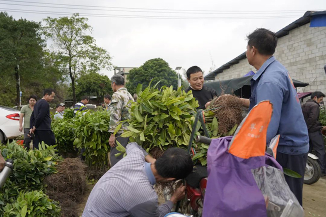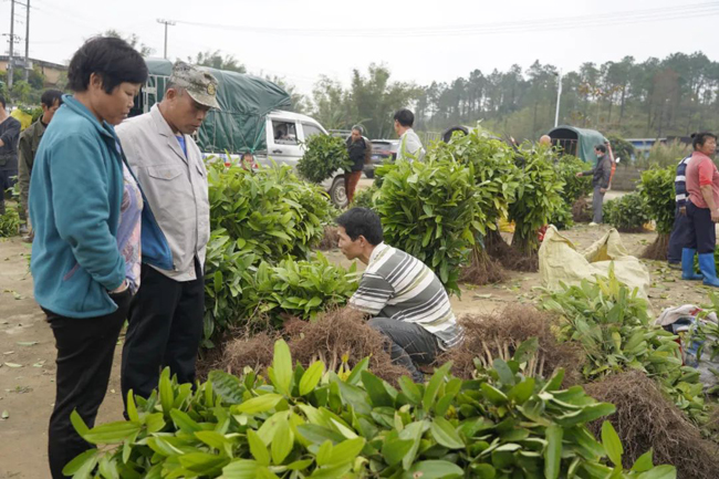 ▲那梭镇肉桂、八角等苗木交易现场。